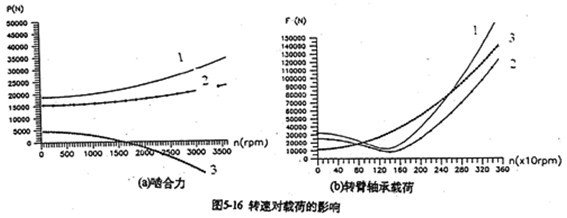 由上式知,當(dāng)齒數(shù)差Z2-Z1越小或傳動(dòng)比i越大時(shí),偏心距e越;壓力角越大時(shí),偏心距e越大,則選用的行星軸承尺寸大,齒板高速軸承孔徑也就大。圖5-17是傳動(dòng)比、壓力角、以減速器行星軸承載荷的影響。由圖可見,傳動(dòng)比的變化對(duì)減速器的動(dòng)力性能影響極大;傳動(dòng)比越大,則偏心距越小。由式(5-30)分析得,行星軸承載荷必須大。壓力角的變化,對(duì)行星軸承載荷影響小得多。