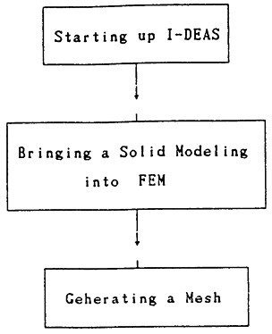 在SUN工作站上使用I—DEAS軟件中的有限元模塊(FE—Modeling—and—Analysis)對SHQ40箱體進行有限元分網(wǎng),其具體操作規(guī)程如圖3-7示。