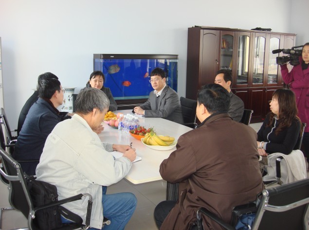 吳橋縣縣長(zhǎng)韓祝強(qiáng)和志遠(yuǎn)減速機(jī)有限公司劉占坤總經(jīng)理在座談會(huì)上
