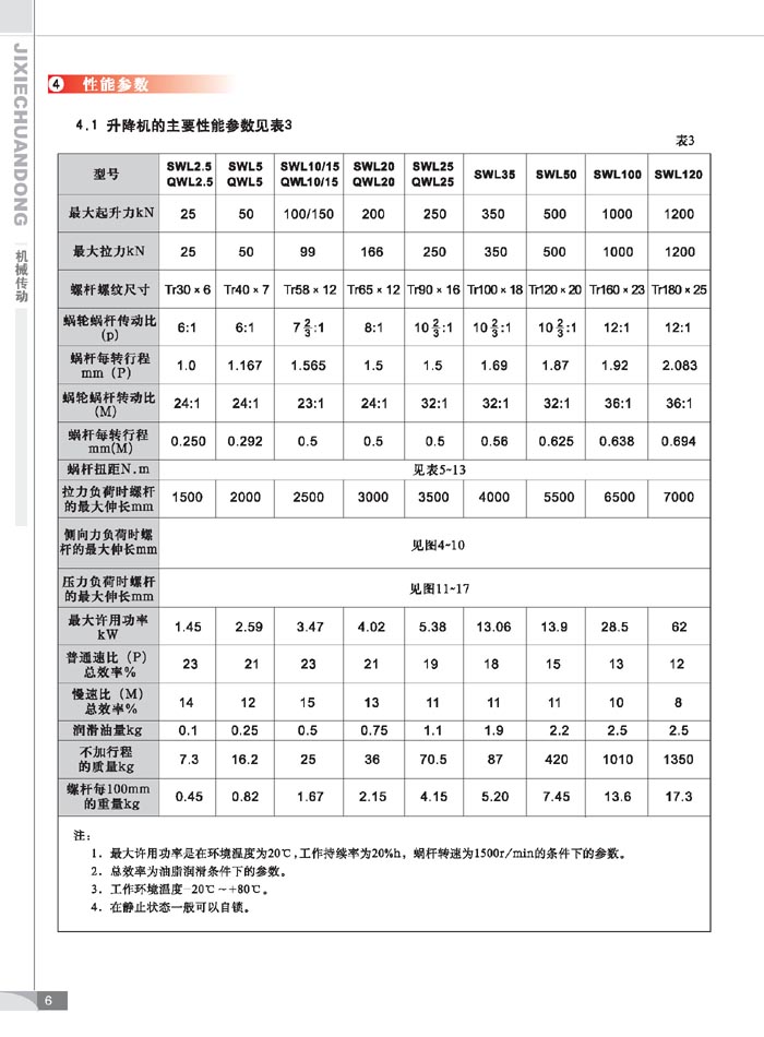 QWL系列蝸輪絲桿升降機(jī)是一種基礎(chǔ)起重部件,已列為JB/ZQ4391-86標(biāo)準(zhǔn)。承載能力2.5-120T。具有結(jié)構(gòu)緊湊,體積小,重量輕,動(dòng)力源廣泛。無噪音,安裝方便,使用靈活,功能多。配套形式多,可靠性高,使用壽命長(zhǎng)等許多優(yōu)點(diǎn)。具有提升、降落、推進(jìn)、翻轉(zhuǎn)等多種功能?蓡闻_(tái)也可組合使用,可能用電動(dòng)機(jī)或其他動(dòng)力直接帶動(dòng),也可手動(dòng)。有不同的結(jié)構(gòu)型式和裝配方式,提升高度可按用戶的要求制造,該裝置可以自鎖。