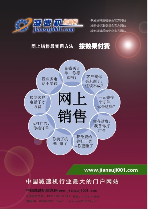 1、在減速機信息網(wǎng)會員后臺填寫你接業(yè)務(wù)的電話號碼 2、選擇你能銷售的產(chǎn)品。 3、在自己帳戶里充值話費。 4、開通網(wǎng)上銷售。 5。在家等業(yè)務(wù)電話,銷售產(chǎn)品。