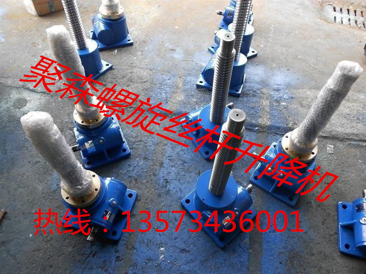 升降機(jī)按結(jié)構(gòu)型式分為:1型-絲杠同時作旋轉(zhuǎn)運動和軸向移動;2型-絲杠作旋轉(zhuǎn)運動。絲杠上的螺母作軸向移動。