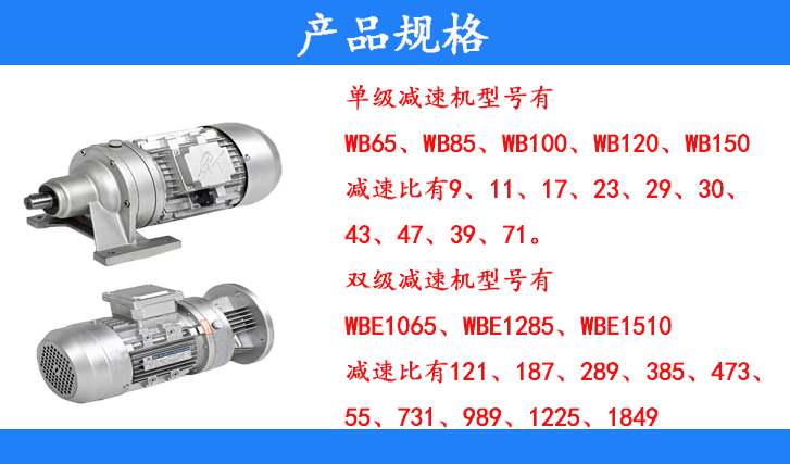 A、WB系單級減速機(jī)型號有:WB65、WB85、WB100、WB120、WB150