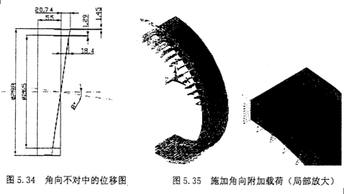 重復(fù)5.4.2節(jié)中的(1),(2),(3),(4),(5),(6)步驟。然后開始施加綜合的附加載荷。由于綜合位移使得橡膠圓環(huán)附加的徑向拉應(yīng)力σax,附加的剪應(yīng)力τrad,附加的角向應(yīng)力τrad,以及由橡膠圓環(huán)旋轉(zhuǎn)扭矩產(chǎn)生的剪應(yīng)力τrot。所以綜合不對中的應(yīng)力情況應(yīng)該是σax、τrad、τrad與τrot的疊加。施加綜合附加載荷后的圖形圖5.43所示。