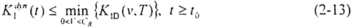 按照上面的觀點,從止裂發(fā)生的t0時刻一直到裂紋速度降為零的ta時刻,均應(yīng)小于擴(kuò)展斷裂韌度KID(v,T)的最小值,止裂判據(jù)表示為: