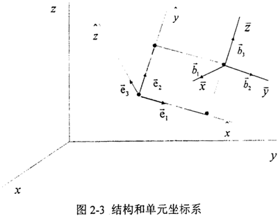 ●節(jié)點坐標(biāo)系行(,),反映節(jié)點的平動與轉(zhuǎn)動;正交基矢量為bi。