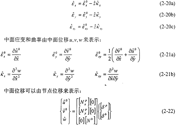 基于Kirchhoff假設(shè)的板殼單元,殼體中某一點的應(yīng)變,,可以由中面應(yīng)變,,和曲率,來表示: