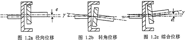 齒輪聯(lián)軸器的分類:一般按齒形分,當外齒軸套在工作圓切平面內(nèi)的齒形是直線時稱為直齒聯(lián)軸器;當外齒軸套在工作圓切平面內(nèi)的齒形是鼓形時稱為鼓形齒聯(lián)軸器,另外還有其它分類方法。由于鼓形齒輪聯(lián)軸器對安裝誤差不敏感在使用中內(nèi)外齒輪允許較大的偏心(其偏心主要有以下三種形式圖1.2a 、1.2b 、1.2c ) ,因此應用比較廣泛。本文主要對鼓形齒輪聯(lián)軸器的特性進行研究。