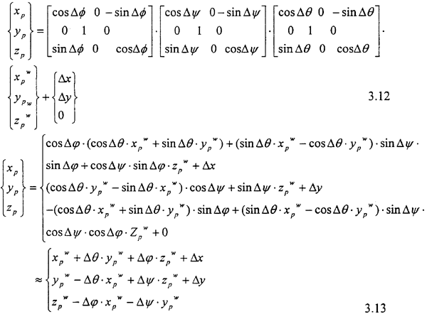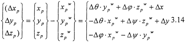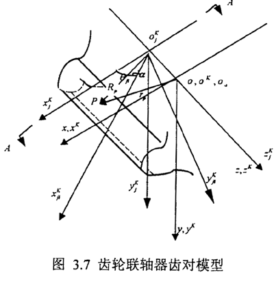 ,Δψ,Δθ為微小位移,則外齒輪任意一點PW(XPW,YPW,ZPW)在外齒輪相對內齒輪發(fā)生位移后,在靜止坐標系內的坐標為:PW(XP,YP,ZP)其值由式3.12~3.13定。