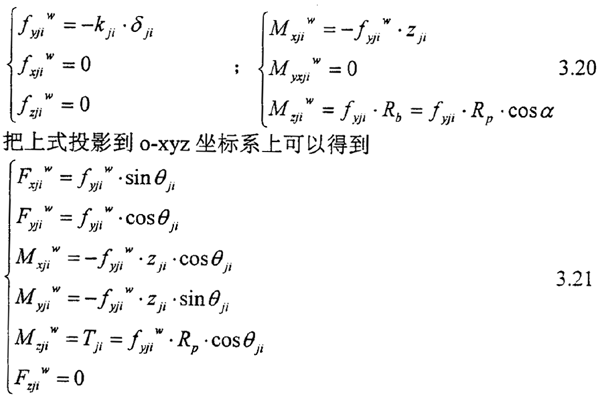 則外齒輪第j分割微無的第i齒所受到的力和對于齒輪中心的力矩為: