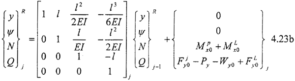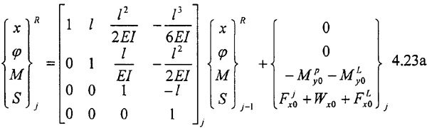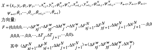 為總剛度陣,乃是因?yàn)槭剑?.20)還不是彎扭耦合振動(dòng)方程的最終形式。這是因?yàn)?):式(4.20)右端含有未知力ΔFxjk,ΔFyjk,ΔMjk,ΔNjk,ΔTj,(k=w,N),方程組中未知量個(gè)數(shù)多于方程個(gè)數(shù);2):ΔFxjk,ΔFyjk,ΔMjk,ΔNjk,ΔTj,(k=w,N)是本征的。必須解決上述這兩個(gè)問題,才能得到彎扭耦合振動(dòng)方程。因而我們還需要尋求一種關(guān)系,通過這種關(guān)系,解決上述兩個(gè)問題,使得各轉(zhuǎn)子的彎扭振動(dòng)及轉(zhuǎn)子間的彎扭振動(dòng)耦合起來,并使彎扭耦合振動(dòng)的方程組有定解,即最終使(4.20)式化為如下標(biāo)準(zhǔn)形式