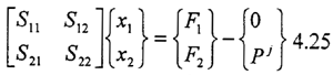 在方程(4.25)中{F1},{F2}為對(duì)應(yīng)于{x1},{x2}的廣義力向量,其中也包括了齒輪聯(lián)軸器內(nèi)外齒所受到的力和力矩。{Pj}則僅由徑向軸承提供的油膜反力組成。當(dāng){F1},{F2}和{x2}已知時(shí),可解得{x1},{Pj}。