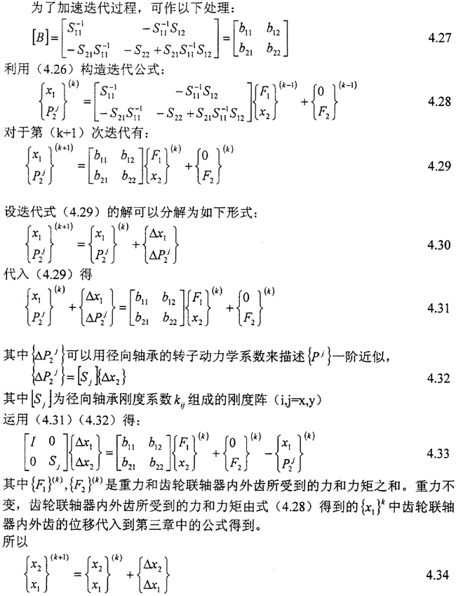 方程(4.1a),(4.1b)仍然可以被用來求解軸系的負(fù)荷分配,只不過齒時(shí)應(yīng)表在成如下形式:
