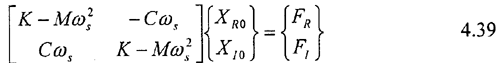 其中為FR為實(shí)部,為Fl的虛部,ωs為激振頻率,設(shè)式(4.36)的解為