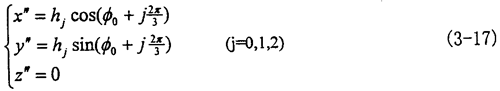(方程中hj為小桿的球面中心P到三叉桿軸線的距離,因為三小桿運動相同,故取其中之一分析,可令j=0)