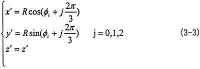 故三叉桿軸頸的軸線方程由坐標系O″X″Y″Z″轉(zhuǎn)到坐標系O′X′Y′Z′為: