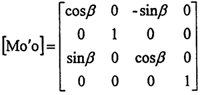 于是動坐標系O″X″Y″Z″與定坐標系OXYZ之間的四階變換矩陣[Moo″]為: