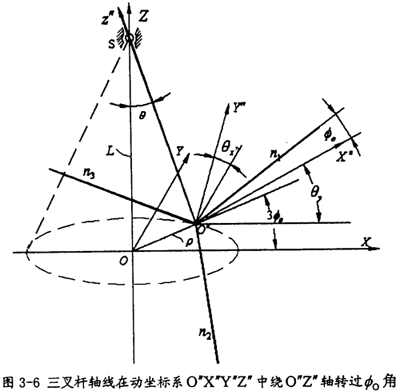 下面討論如何在固定坐標系O′X′Y′Z′中表達出三叉桿軸線的參數(shù)方程。