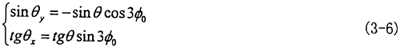 由式(3-10)中的(1)、(2)兩式,消去x″,即可求出輸入角