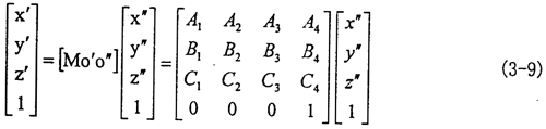 (3-7)式中A1、A2、A3、A4、B1、B2、B3、B4、C1、C2、C3、C4等于其在矩陣[Mo′o″]中對應(yīng)位置的表達式。