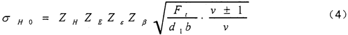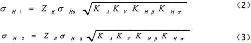 小輪和大輪的計算接觸應(yīng)力σH1、σH2分別按下述兩式確定: