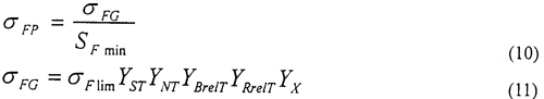 式中:σFG——計算齒輪的彎曲極限應(yīng)力,N/mm2;