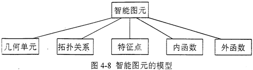 在系統(tǒng)實(shí)現(xiàn)中,智能圖元是一個(gè)典型的“類”的結(jié)構(gòu),包括幾何單元集合、拓?fù)潢P(guān)系描述、特征點(diǎn)集合、內(nèi)函數(shù)和外函數(shù)(見(jiàn)圖4-9),定義如下: