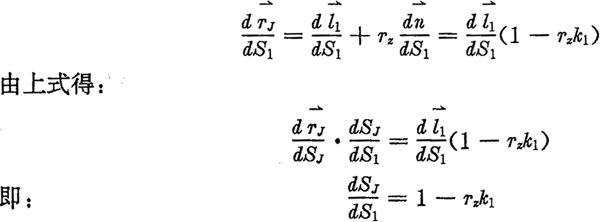 下面再推導一下齒廓及其法向等距線的相對曲率關(guān)系。設(shè)HJ的孤長參數(shù)為SJ,相對曲率為kJ,而H1的孤長參數(shù)為S1,相對曲率為k1,由微分幾何可得: