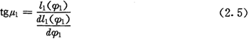 由微分幾何知,曲線Hl的向徑與切線正方向的夾角μ1可由下式計算: