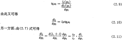 同樣,由微分幾何,曲線H2的向徑與切線正方向的夾角μ2可由下式計算: