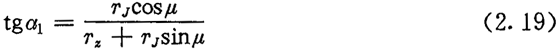 將它們代入(2.19)式,便得到(2.37)式?梢娗懊嫠玫降亩嗉げㄓ嬎愎綄げㄆ鳛槠膱A的單激波也同樣適用。在單激波情況下,內(nèi)外滾子工作角之間的關系簡化成了:
