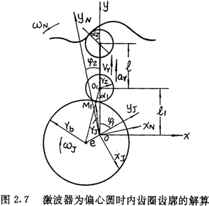 由上面可以看出,在選定激波器廓形TJ=TJ(θ)的情況下,正反兩種結構所得到的內(nèi)齒圈齒廓方程式(2.21)與式(2.22)在形式上是不同的。對于反向結構,用-θ代換激波器方程中的θ,即令TJ=TJ(-θ),則θ增加的方向為順時針方向,若激波器廓形可表示為偶函數(shù),即TJ(—θ)=TJ(θ),讓激波器按逆時針方向轉動,則所得的內(nèi)齒圈齒廓方程式完全與(2.21)式相同。因而齒廓方程式(2.22)與式(2.21)雖然形式不同,但實質是一樣的。區(qū)別在于參數(shù)吸的取值方向,今后以式(2.21)作為內(nèi)齒圈齒廓的標準形式。