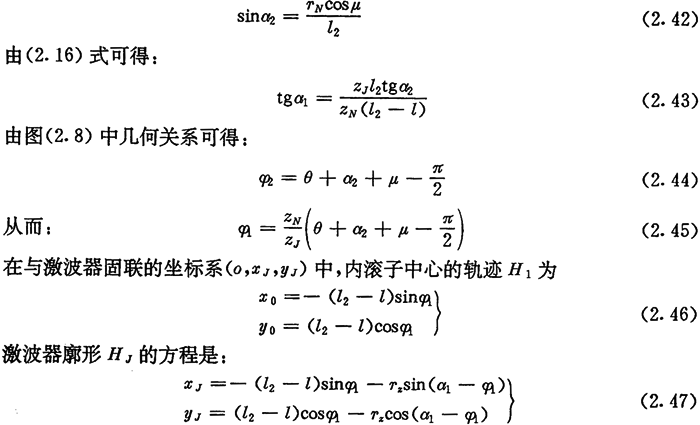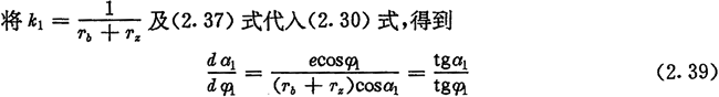 式(2.36)、(2.37)、(2.38)是偏心圓激波器的推桿減速器中l(wèi)1、a2與φ2的基本關系式,后面常用到它們。
