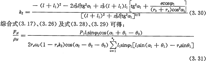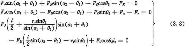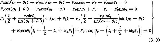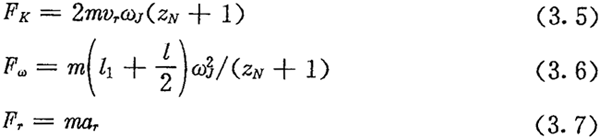 由于考慮了慣性力,所以力Fc不通過交點(diǎn)Q,lc也是一個(gè)未知數(shù)。若根據(jù)輸入功率確定出FJ,則方程組(3.8)只剩下FN、FC及l(fā)c三個(gè)未知數(shù)了。
