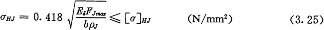 激波器與內(nèi)滾子的接觸,顯然是兩個(gè)圓柱體的相壓接觸,由彈性力學(xué)可知,在接觸處產(chǎn)生的最大接觸應(yīng)力σHJ可由下面的赫茲應(yīng)力公式來計(jì)算:
