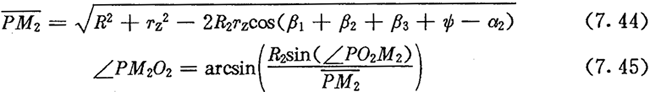 上式中的α2是外滾子中心軌跡曲線在O2點(diǎn)向徑與法線的夾角,可由圖7.3求得,為: