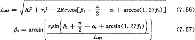 上式中的LMI表示激波器與內(nèi)滾子的接觸點(diǎn)M1離轉(zhuǎn)動中心O的距離,可從圖7.6中的△OBM1求得: