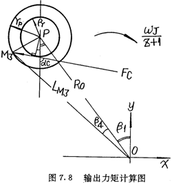 上式中LM3為傳動圈對軒動機(jī)構(gòu)總作用力FC的作用點(diǎn)M3離轉(zhuǎn)動中心O的距離,如圖7.8所示。從圖中△OM3P可得:
