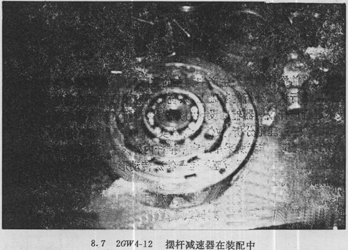 擺桿減速器的其它零部件都是在解放軍7435工廠進(jìn)行加工的,并在該廠完成裝配。圖8.7為2GW4-12擺桿減速器正在裝配之中,圖8.8是該機(jī)外型。裝配后,運(yùn)轉(zhuǎn)2個(gè)小時(shí)左右,機(jī)器噪音小,運(yùn)轉(zhuǎn)平穩(wěn),工作狀態(tài)良好。