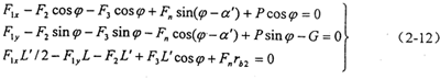 對(duì)作用于星型環(huán)板上的平面力系,可列出靜力平衡方程: