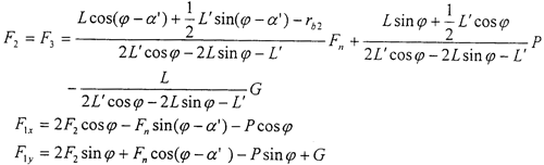 如果不計(jì)兩上支承軸重力的影響,則兩上支承軸O2B、O3C可看作二力桿,它的作用力如圖所示。不考慮制造誤差和載荷分配不均勻因素的影響,可以補(bǔ)充方程:F2=F3,則聯(lián)立求解得到: