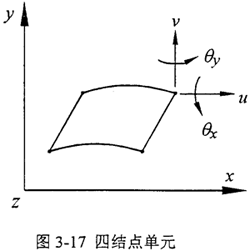 由上述分析可知:均載環(huán)離散成八個(gè)對(duì)稱的環(huán)弧段,因此均載環(huán)總體剛度的計(jì)算歸結(jié)為求解其離散的環(huán)弧段的剛度。本章利用I-DEAS分析軟件計(jì)算內(nèi)、外表面各均勻分布八個(gè)凸臺(tái)的輸入、輸出軸彈性均載環(huán)的離散環(huán)弧段的剛度,從而得到均載環(huán)的總體剛度。對(duì)于圖3-15所示的離散環(huán)弧段,內(nèi)凸臺(tái)的受力沿+x方向,并且在沿軸向方向上均勻分布,所以只需考慮xy平面內(nèi)的形變分量和位移分量即可,可以認(rèn)為是平面應(yīng)力問(wèn)題。在單元選擇上,選用“平面應(yīng)力問(wèn)題”中的四結(jié)點(diǎn)單元,定義單元的四結(jié)點(diǎn)厚度與彈性均載環(huán)的寬度相一致。四結(jié)點(diǎn)單元如圖3-17所示。