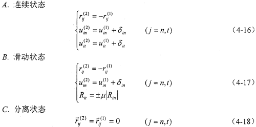 用rij和uij分別表示輪齒在第i個接觸點局問坐標系j(j=n,t)方向上的接觸力分量和位移分量,局部坐標系如圖4-12所示,上標(1)、(2)分別表示主動內(nèi)齒輪和從動外齒輪,則