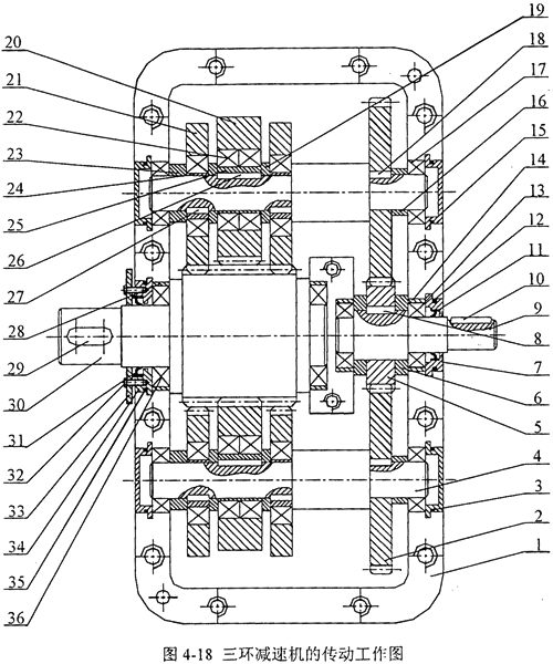根據(jù)三環(huán)減速機的基本參數(shù)和結構參數(shù),設計出三環(huán)減速機的傳動工作圖如圖4-18所示。