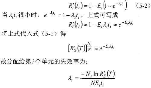聯(lián)立式(5-1)和式(5-2) ,可得第i個(gè)單元分配的可靠度為