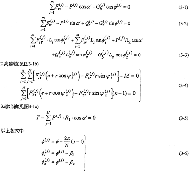 (3-11)及式(3-14)就是少齒差內(nèi)齒行星傳動(dòng)機(jī)的動(dòng)力分析補(bǔ)充方程。