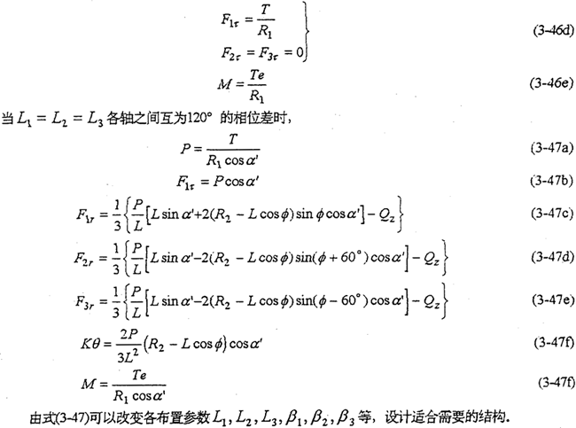 由以上兩種情況的解式(3-21)及式(3-22)可知,內(nèi)齒行星傳動機構的行星軸承載荷與軸承接觸剛度K及分流機構齒輪的接觸剛度Kp有關。分流機構既傳遞動力又傳遞運動,使機構在任何時候都具有確定的運動,沒有機構的死點位置,這從各解的結(jié)果可以看看無論φ怎么變,各載荷值均不會出現(xiàn)無窮大情況。
