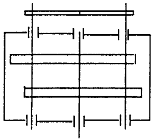 本研究在一個傳動裝置中采用兩個成一定相位差的平行雙曲柄四桿機構(gòu),它們的連桿內(nèi)齒輪與兩個擺線輪相嚙合的情況。為了實現(xiàn)靜力平衡,兩個平行雙曲柄四桿機構(gòu)的相位差設(shè)計為π,結(jié)構(gòu)型式見圖2.5。