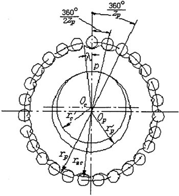 由(2-8)可知,擺線輪的實際齒形決定于rp,α,rrp,Zp,△rp,△rrp,δ這七個獨立參數(shù)。