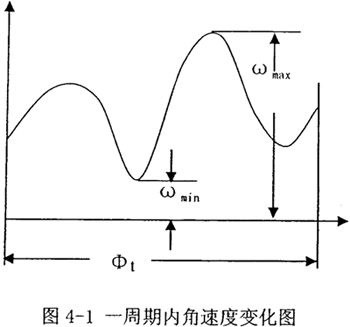 如圖4-l所示為在一個(gè)周期內(nèi)等效構(gòu)件角速度的變化曲線,其平均角速度田。在工程實(shí)際當(dāng)中,常用其算術(shù)平均值來(lái)表示,即